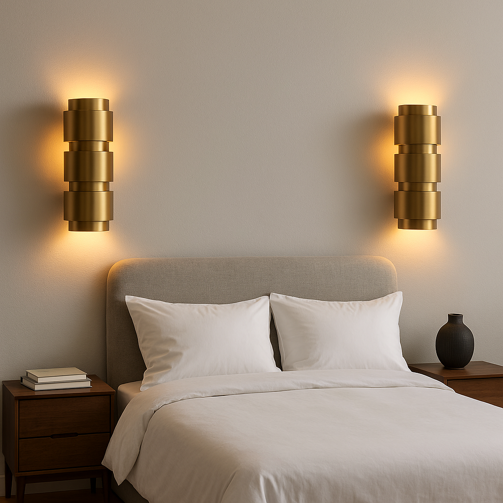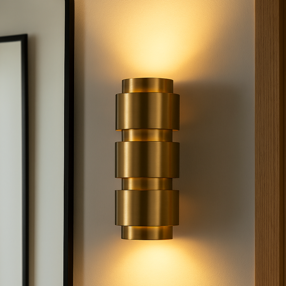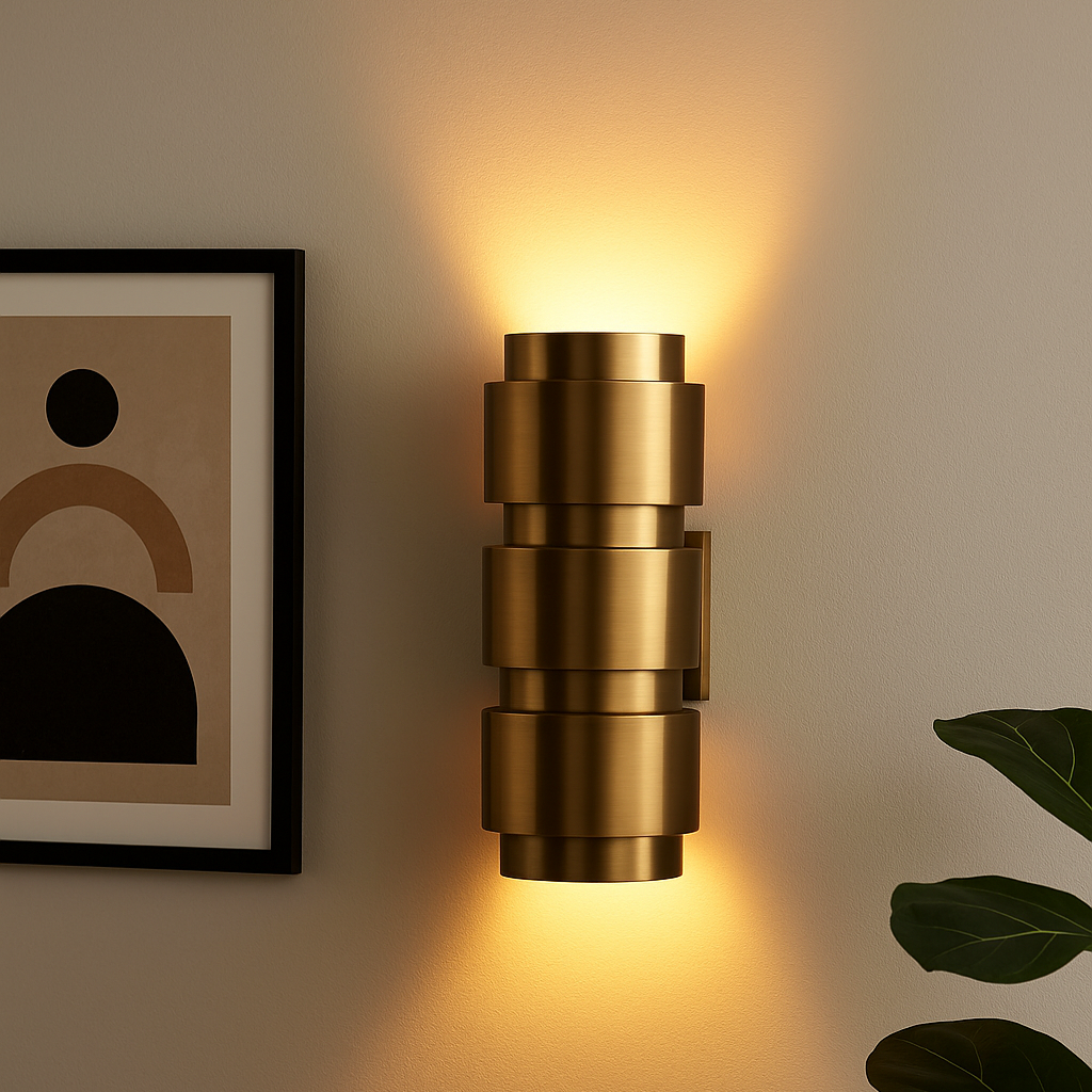 Cette applique murale dorée séduit par son design sculptural et sa finition laiton brossé. Ses formes géométriques superposées diffusent une lumière douce et chaleureuse, idéale pour créer une ambiance raffinée dans la chambre, le salon ou l’entrée. Avec son style intemporel, elle apporte une touche d’élégance subtile tout en restant facile à intégrer dans différents univers décoratifs.