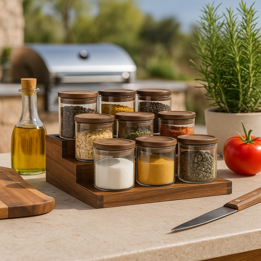 Fabriqué en matériaux nobles, il s’intègre aussi bien dans une cuisine contemporaine que dans un espace extérieur pour les repas d’été. Chaque pot offre une bonne contenance tout en restant compact.