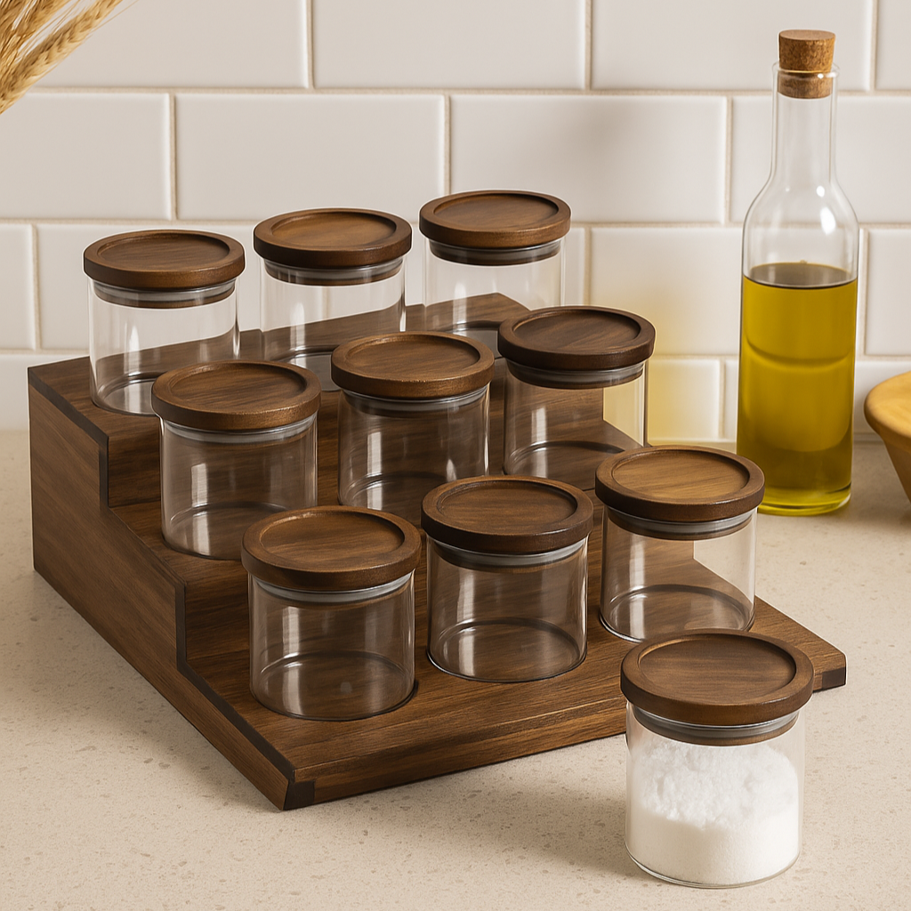 Set de pots à épices avec socle escalier en bois GUSTAVE