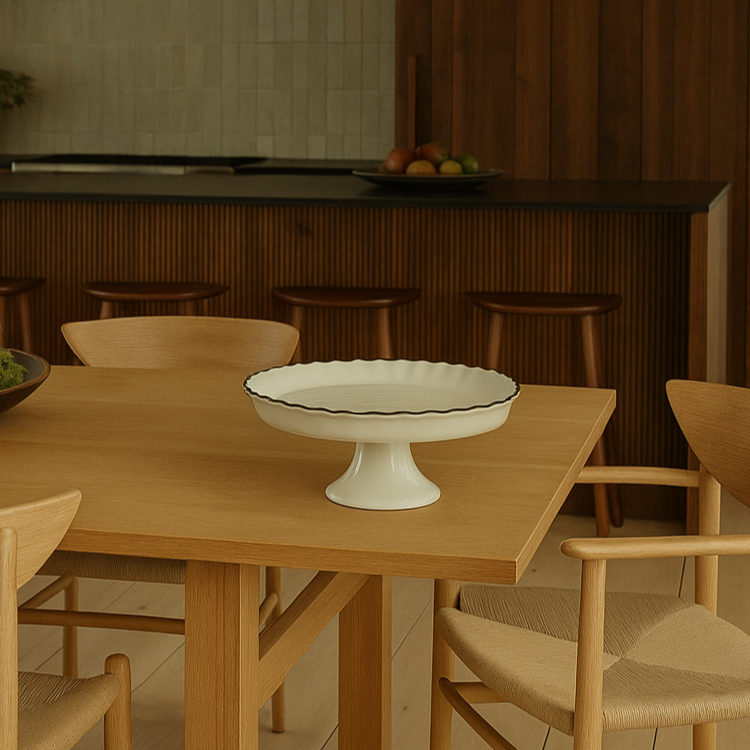 Avec ses lignes épurées et son contraste subtil entre blanc doux et marron profond, l’assiette Tadao apporte une touche raffinée à vos tables du quotidien comme aux grandes occasions. En porcelaine épaisse, elle mêle robustesse et finesse dans un design intemporel, qui sublime autant une cuisine minimaliste qu’un art de la table plus chaleureux.