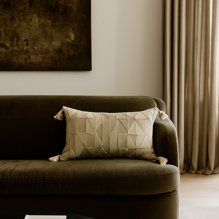 Apportez chaleur et texture à votre intérieur avec ce coussin esprit bohème. Le modèle carré (45 x 45 cm) et le modèle rectangulaire (50 x 30 cm) s’associent à merveille grâce à leur broderie géométrique ton sur ton et leurs pompons délicats. Le tissu naturel aux nuances beiges crée une atmosphère douce et apaisante, parfaite pour un salon ou une chambre.
