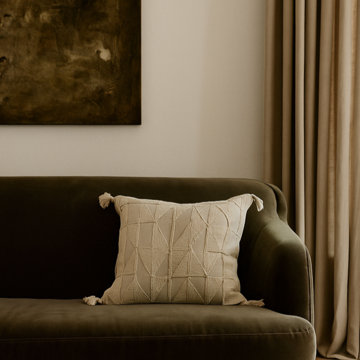 Apportez chaleur et texture à votre intérieur avec ce coussin esprit bohème. Le modèle carré (45 x 45 cm) et le modèle rectangulaire (50 x 30 cm) s’associent à merveille grâce à leur broderie géométrique ton sur ton et leurs pompons délicats. Le tissu naturel aux nuances beiges crée une atmosphère douce et apaisante, parfaite pour un salon ou une chambre.