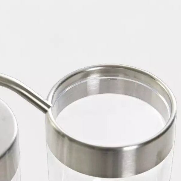 Apportez une touche de modernité à votre salle de bain avec cet ensemble de bain transparent et argenté. Composé d'un distributeur de savon et d'un gobelet assorti, il allie design épuré et finitions soignées pour un rendu raffiné.