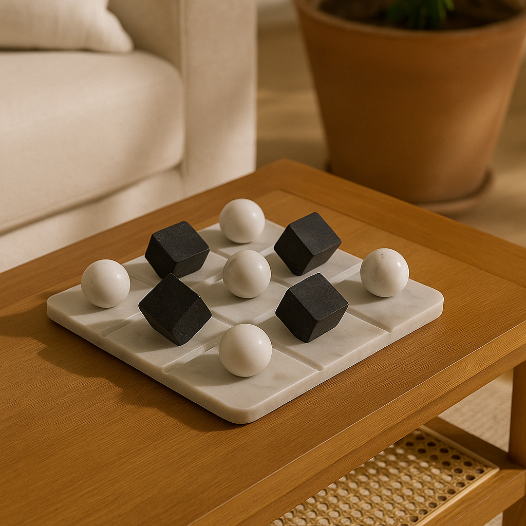 Un objet aussi ludique que décoratif. Le jeu de morpion Elliot se distingue par son design minimaliste et ses matériaux nobles. Entièrement conçu en marbre blanc et noir, il apporte une touche graphique et sophistiquée à n’importe quel intérieur. Idéal posé sur une table basse ou une étagère, il allie jeu d’esprit et esthétique contemporaine.