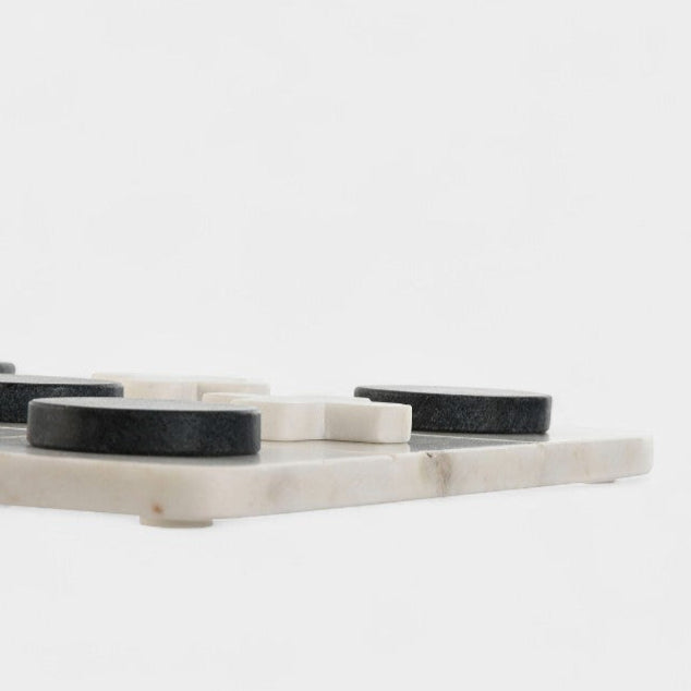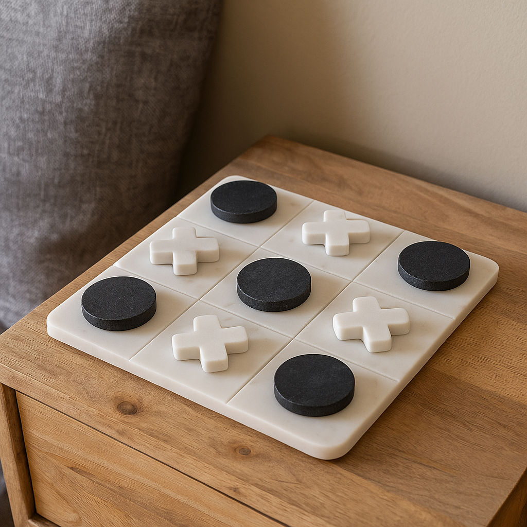 Le jeu de morpion Arthur allie divertissement et élégance intemporelle. Conçu en pierres blanches et noires, il transforme un simple jeu de société en véritable objet décoratif. Son design raffiné en fait un accessoire à la fois ludique et esthétique, idéal pour habiller une table basse ou une bibliothèque. Chaque partie devient un moment de convivialité sublimé par des matériaux nobles.