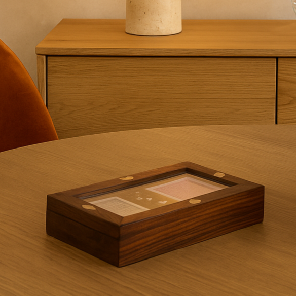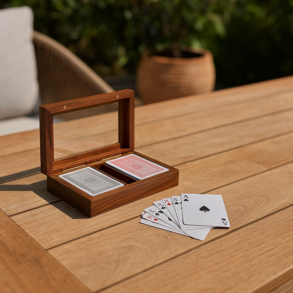 Laissez-vous séduire par le charme intemporel d’Elias, une boîte de jeux raffinée mêlant bois d’acacia et d’érable. Elle renferme deux jeux de cartes et trois dés en bois, dans un coffret aussi décoratif que pratique. Un bel objet à laisser en évidence dans un salon ou sur une console, pour allier esthétisme et convivialité.