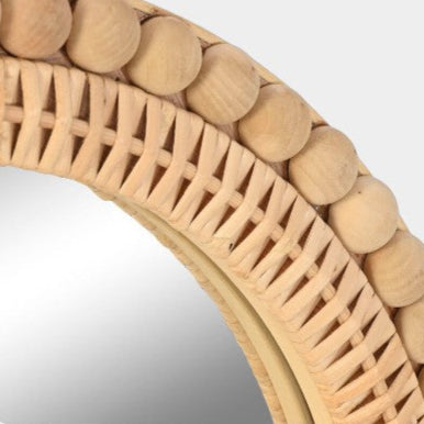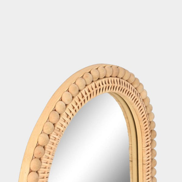 Sa forme arquée adoucit les lignes d’un mur tout en apportant une touche chaleureuse et artisanale à votre intérieur. Conçu en rotin tressé et orné de petites perles de bois, il reflète la lumière avec élégance et s’intègre aussi bien dans une chambre, une entrée ou un salon.