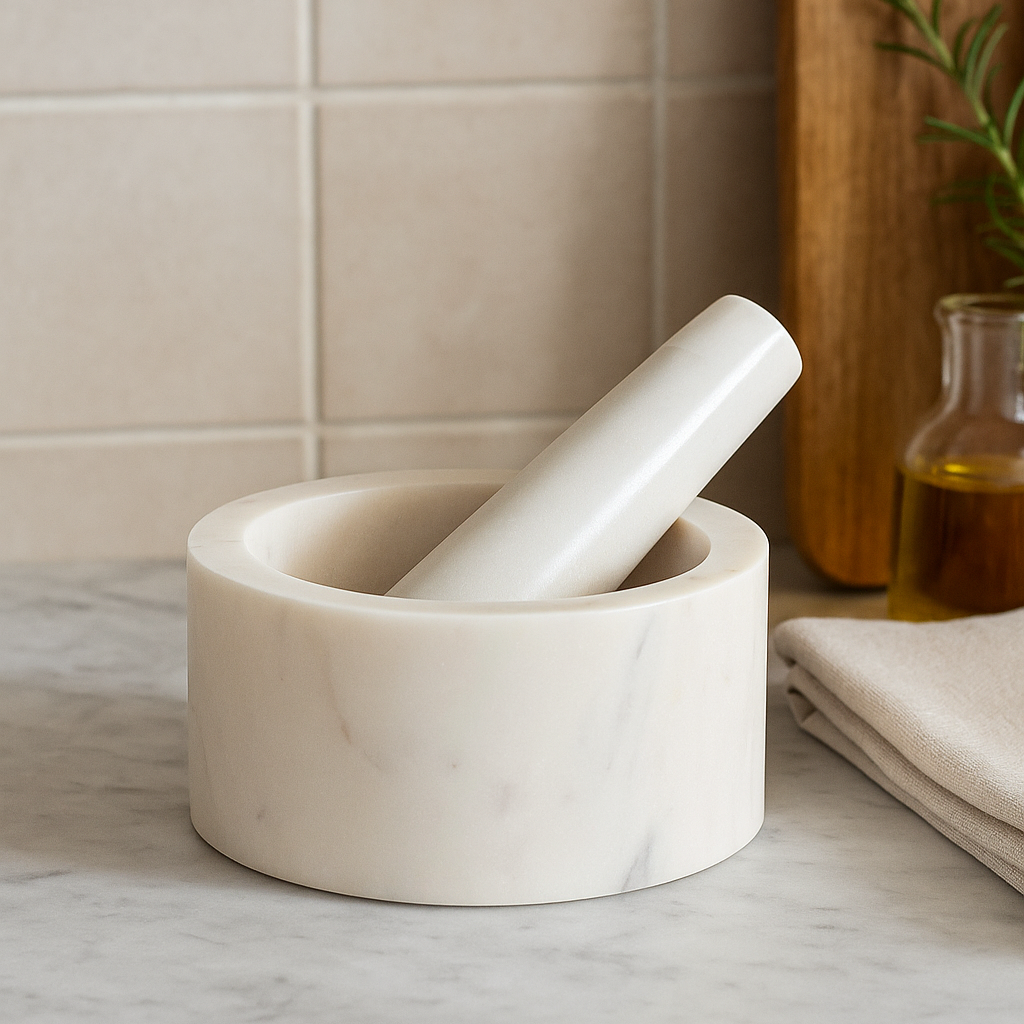 Mortier de cuisine en marbre blanc