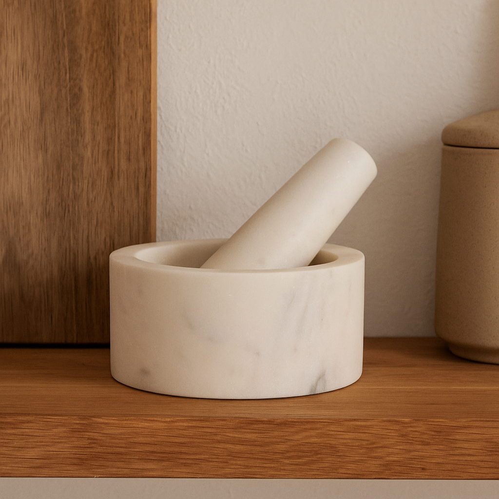 Parfait pour moudre vos épices, herbes aromatiques ou réaliser des sauces maison, il apporte une touche naturelle et intemporelle à votre plan de travail.