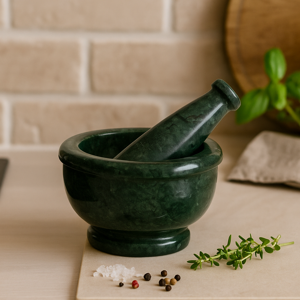 Parfait pour moudre vos épices, herbes aromatiques ou réaliser des sauces maison, il apporte une touche naturelle et intemporelle à votre plan de travail.