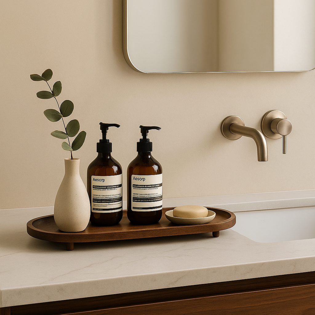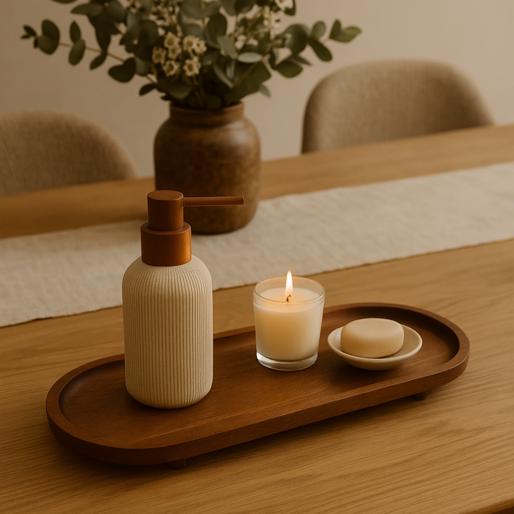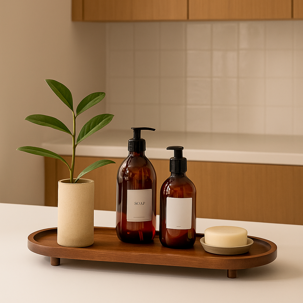 Le plateau Lou sublime les petits détails avec élégance. En bois foncé et surélevé par de fins pieds discrets, il accueille bougies, flacons ou objets déco avec subtilité. Sa forme ovale et ses finitions douces apportent une touche chaleureuse, aussi belle en centre de table qu’en accessoire de salle de bain ou sur une console. Une pièce simple, pensée pour mettre en valeur l’essentiel.