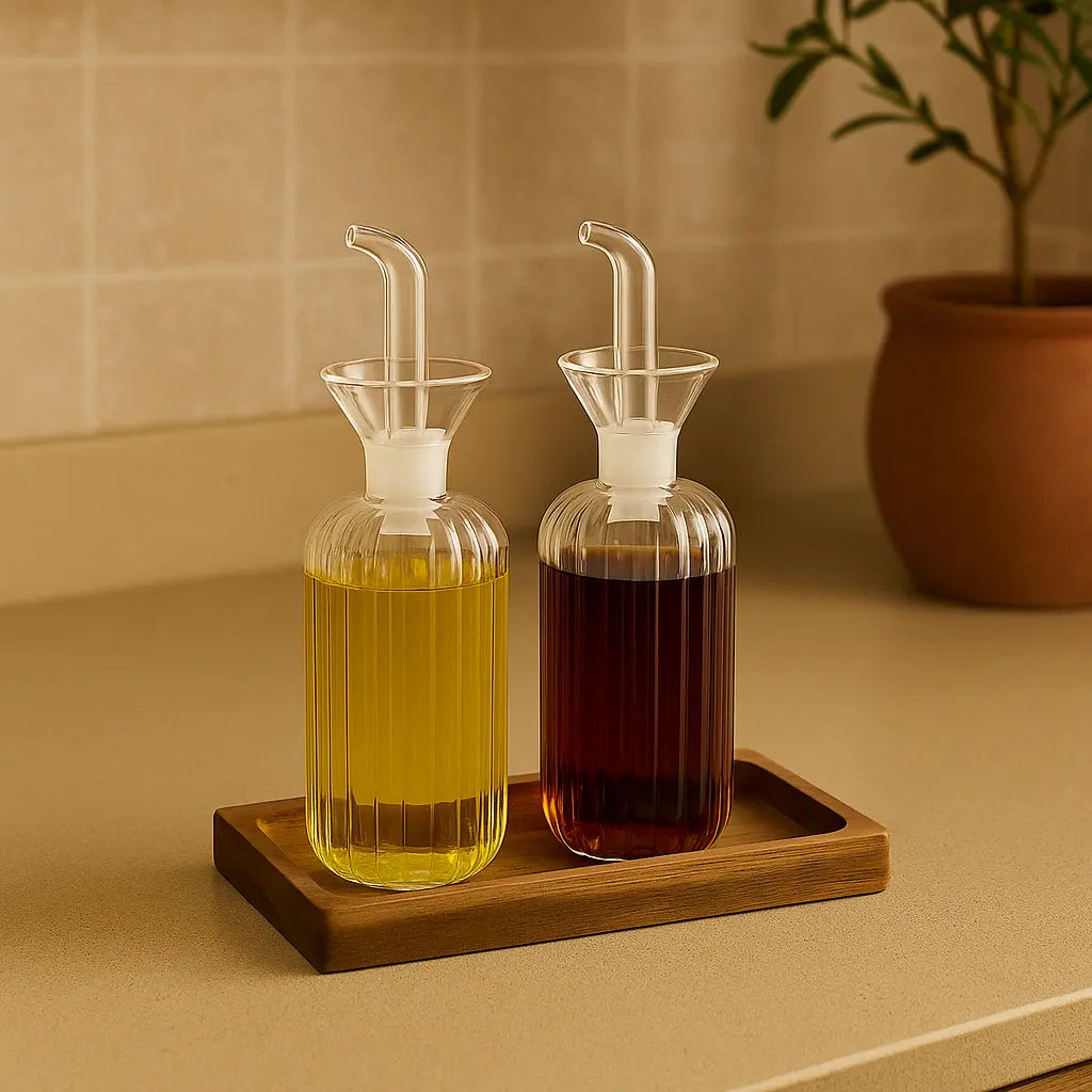 Parfaits pour présenter vos huiles et vinaigres avec style, ils allient esthétique et praticité. Chaque détail, du bec verseur à la base striée, est pensé pour embellir votre plan de travail tout en restant fonctionnel.