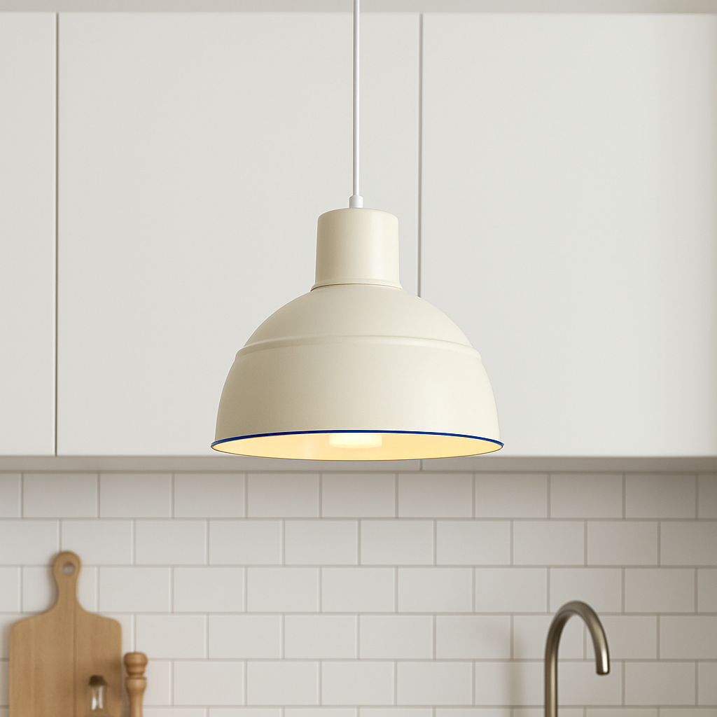 Une suspension au design épuré qui associe subtilement le bleu et le blanc pour une touche moderne et sophistiquée. Son allure intemporelle s’intègre parfaitement dans une cuisine, une salle à manger ou un salon.